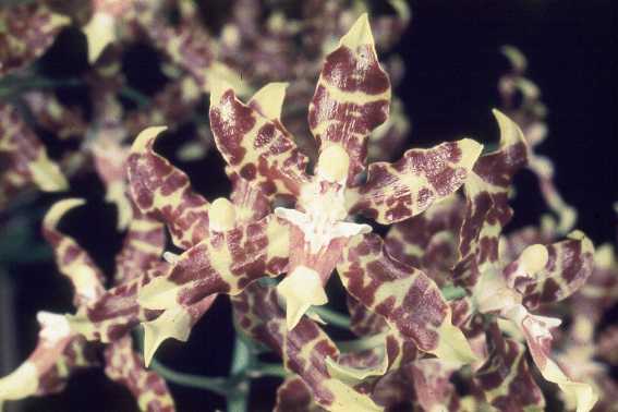 Found in Durango, Nayarit, Sinaloa, Jalisco and Michoacan states of Mexico in pine oak forests on the Pacific coast at elevations of 750 to 1800 meters as a medium sized, warm to cool growing epiphyte with ovate to elliptic, laterally compressed, ancipitous, 3 to 5 longitudinally grooved and ridged pseudobulbs partially enveloped basally by 4 to 6, imbricate, leaf-bearing sheaths and carrying, 2 to 3, apical, narrowly elliptic to lanceolate, acute, erect to arching, slightly leathery, keeled dorsally, shortly conduplicate below into the base leaves that blooms in the spring on an axillary from the base, 16 to 47" [40 to 120 cm] long, many [15 to 72] flowered, paniculate inflorescence carrying successive to simultaneous opening, fragrant, showy flowers