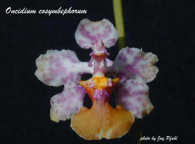 Synonyms Oncidium cosymbephorum Morren 1849; Oncidium guttatum var. morrenii (Lindl.) Rchb.f. 1863; Oncidium luridum var. morrenii Lindl. 1855; Trichocentrum cosymbephorum (C.Morren) R.Jiménez & Carnevali . 2003