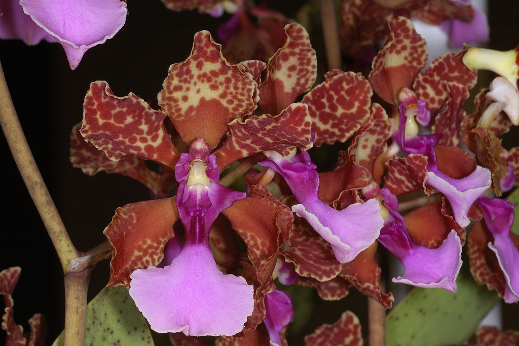 Found in Ecuador, Colombia, Venezuela, the Guianias and Trinidad at elevations of 300 to 500 meters as a medium sized, hot to cool growing plant lacking or with minute pseudobulbs carrying a single apical, coriaceous, oblong-lanceolate, green spotted purple, mule ear leaves that blooms in the spring, summer and fall with fragrant, waxy, long-lasting, variable colored flowers on a basal, 1 1/2' [45 cm] long, few to many [10 to 12] flowered, stout panicle with grey-brown, basal sheaths.