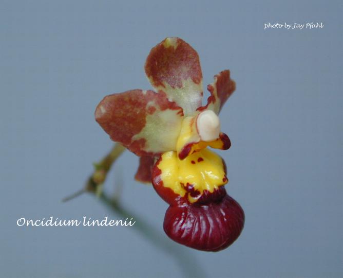 Synonyms Oncidium lindenii Brogn. 1842; Oncidium lindeni hort. ex Rchb. f. 1842; Oncidium retemeyerianum Rchb.f. 1856; Trichocentrum lindenii (Brongn.) M.W.Chase & N.H.Williams 2001