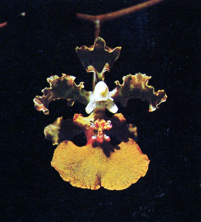 Found in Mexico, Guatemala, Belize, Trinidad & Tobago, French Guiana, Guyana, Venezuela, Colombia and Peru? at elevations of sea level to 1400 meters with very small pseudobulbs enveloped by imbricating, scarious sheaths and carrying a single, apical, oblong-ellptic to elliptic-lanceolate, rigid, coriaceous, acute to obtuse leaf where it blooms in the spring through fall on a panicle with short branches and scarious sheaths that can attain 8 feet [240 cm] and is a large sized, cool to hot growing, mule eared epiphyte.