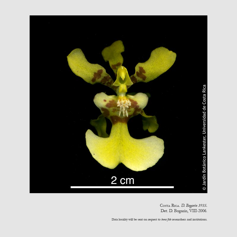 References W3 Tropicos, Kew Monocot list , IPNI ; The Epidendra Website; *Bot. Zeitung (Berlin) 10(40): 695. 1852; Das Pflanzanreich Regni Vegetabilis Conspectus Odontoglossum/Oncidium Kranzlin 1922 as O angustisepalum drawing fide; Das Pflanzanreich Regni Vegetabilis Conspectus Odontoglossum/Oncidium Kranzlin 1922 as O sclerophyllum; Repert. Sp. Nov. Regni. Veg. Beih. 17: 84. Panama Schlechter 1922; AOS Bulletin Vol 27 No 6 1958; Venezuelan Orchids Illustrated Vol 6 Dunsterville & Garay 1976 not = O picturatum; Orchids of Venezuela An Illustrated Field Guide Vol 2 Dunsterville & Garay 1979 not = O picturatum; Rudolf Schlechter Die Orchideen Band 1C lieferung 33 - 36 2057 - 2308 Brieger 1997 as O obryzatum photo good; Rudolf Schlechter Die Orchideen Band 1C lieferung 33 - 36 2057 - 2308 Brieger 1997; Fieldiana Biology, Flora Costa Ricensis Family # 39 Orchidaceae, subtribes Maxillariinae and Oncidiinae Atwood & Mora 1999 drawing fide; Native Ecuadorian Orchids Vol 4 Dodson 2003 photo fide; Manual de Plantas de Costa Rica Vol 3 Hammel, Grayum, Herrera and Zamora 2003; Orchid Species Culture: Oncidium Odontoglossum Bakers 2005; Orchid Species of Peru Zelenko Bermudez 2009 photo fide; Orchids of Costa Rica Vol 1 Morales 2009 photo fide; An Illustrated Field Guide to the Orchids of the Yotoco Forest Reserve Colombia Kolanowska, Escobar, Sanchez & Szlachetko 2011 as Vitekorchis klotzschiana drawing fide; Vanishing Beauty, Native Costa Rican Orchids Vol 2 Lacaena to Pteroglossa Pupulin 2020 photo fide