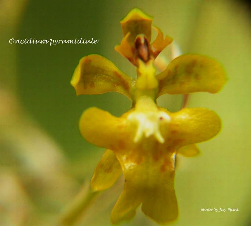 CAUTION!!!!CAUTION!!!! This name until recently was thought to describe a Central American, pink flowered, highly fragrant orchid, but in 2010 it was realized that HBK acutally was describing a yellow flowered species from Colombia, Ecuador and Peru that has been commonly known as O pyramidale, hence the photos above. If you have the pink flowered, Central American species then the true current name is Oncidum sotoanum, please go to that species for the information on it.
