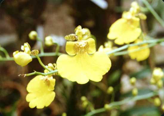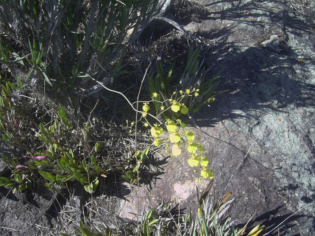 Found in Goias, Bahia, Minas Gerais, Sao Paulo, and Parana states of Brazil, Bolivia and Paraguay at elevations of 500 to 1800 meters as an epiphytic, medium sized, cool to warm growing orchid with ovoid, elongate, slightly compressed and rugose, 4" [10 cm] pseudobulbs that have 2 to 3 apical, lanceolate, coriaceous yet flexible, curved 8" [20 cm] leaves. Blooming in the fall and winter on a basal stiff panicle, usually pendant, branched, lax and 2 to 5' [60 to 150 cm] long and carrying many non-fragrant, variable sized flowers.