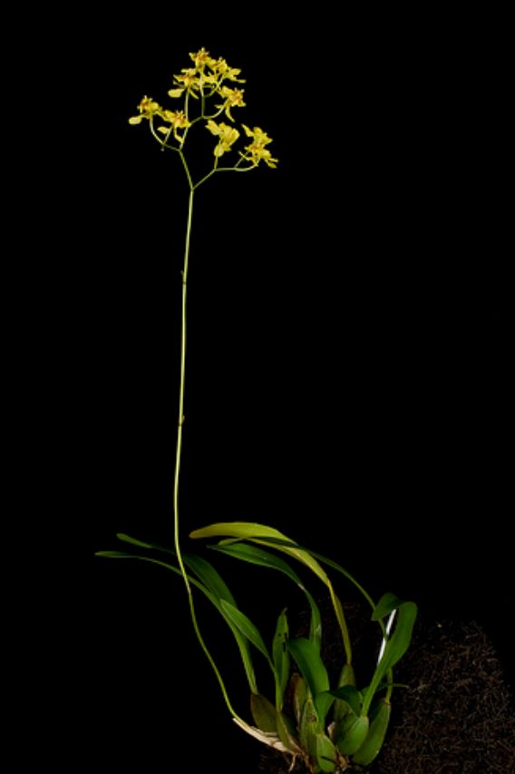 Found in Venezuela, Colombia, Ecuador and Peru at elvations of 1800 to 2430 meters as a cool growing orchid that blooms on an axillary, 10" [25 cm] long, paniculate, irregularily diverging branches, several flowered inflorescnece.
