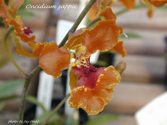 References W3 Tropicos, Kew Monocot list , IPNI ; Orchidaceae Brasilenses Band 2 Pabst & Dungs 1977 as O zappiidrawing fide; Orchid Digest Vol 46 No 2 1982 as O zappii photo fide; Rudolf Schlechter Die Orchideen Band 1C lieferung 33 - 36 2057 - 2308 Brieger 1997 as O zappii; Australian Orchid Review Vol 66 No 2 2001 as O zappii photo; The Pictoral Encyclopedia of Oncidium Zelenko 2002 as O zappii; Oncidium Vol 2 Koniger 2005 as O zappii photo/drawing fide; Orchid Species Culture: Oncidium, Bakers 2006 aS O zappii; AOS Bulletin Vol 76 #8 2007 as O zappii photo fide; Orchids of Brazil Vol 1 Oncidinae Baptista, Harding & Neto 2011 as Brasilidium zappii photo fide