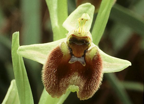 A small to medium sized, cold growing terrestrial from Libya, Great Britain, France, Corsica, Sardinia, Sicily, Belgium, Netherlands, Germany, Czechoslovakia, Austria, Hungary, Switzerland, Italy, Yugoslavia, Albania, eastern Aegean Islands, Greece, Cyprus, Turkey, Romania, Syria, Lebanon, Israel, Jordan, and Iraq in short grasslands, abandoned cultivation, garrigue, scrub and open woodlands at elevations of sea level to 1500 meters with 3 to 7 basal, ovate-oblong leaves that blooms with the foliage still fresh in the late spring on a 1 1/2' [45 cm] long, loosely 3 to 8 flowered inflorescence with foul smelling flowers.