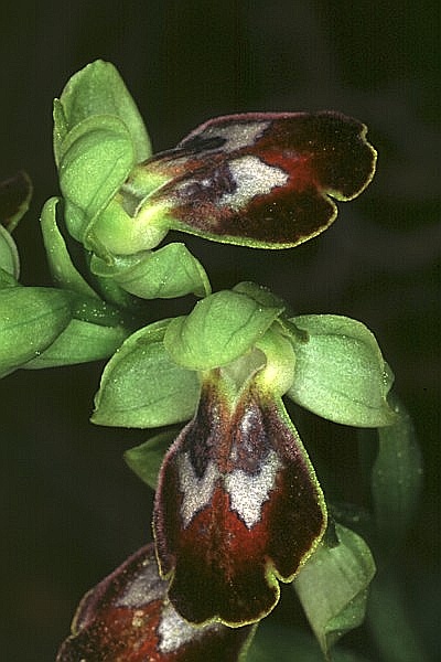 Synonyms Arachnites fusca Tod. 1893; Ophrys africana G.Foelsche & W.Foelsche 2001; Ophrys arnoldii P.Delforge 1999; Ophrys attaviria Rückbrodt & Wenker 1990; Ophrys bilunulata Risso 1844; Ophrys blitopertha Paulus & Gack 1998; Ophrys cinereophila Paulus & Gack 1998; Ophrys creberrima Paulus 1998; Ophrys cressa Paulus 1998; Ophrys creticola Paulus 1998; Ophrys ficuzzana H.Baumann & Künkele 1986; Ophrys funerea Viviani 1824; Ophrys fusca subsp. akhdarensis B.Baumann & H.Baumann 2001; Ophrys fusca subsp. blitopertha (Paulus & Gack) Faurh. & H.A.Pedersen 2002; Ophrys fusca subsp. creberrima (Paulus) H.Kretzschmar 2002; Ophrys fusca subsp. cressa (Paulus) H.Kretzschmar 2002; Ophrys fusca subsp. creticola (Paulus) H.Kretzschmar 2002; Ophrys fusca subsp. thriptiensis (Paulus) H.Kretzschmar 2002; Ophrys fusca var. forestieri Rchb. f 1851; Ophrys fusca var. maculata Balayer 1986; Ophrys fusca var. rubescens Balayer 1986; Ophrys holoserica subsp. maxima (H. Fleischmann) Greuter 1967; Ophrys lupercalis Devillers-Tersch. & Devillers 1994; Ophrys marmorata G.Foelsche & W.Foelsche 1998; Ophrys myodes Lapeyr. 1813; Ophrys nicotiae Zodda 1900; Ophrys obaesa Lojac. 1909; Ophrys obscura Beck 1879; Ophrys oestrifera Rchb. 1830; Ophrys parosica P.Delforge 1995; Ophrys pectus Mutel 1835; Ophrys peraiolae G.Foelsche & al. 2000; Ophrys peraiolae var. rubra G.Foelsche & al. 2000; Ophrys phaseliana D.Rückbr. & U.Rückbr. 1996; Ophrys sphegodes subsp. moesziana Soó 1927; Ophrys sulcata Devillers-Tersch. & Devillers 1994; Ophrys thriptiensis Paulus 1998; Ophrys tricolor Desf. ex Nyman 1882; Ophrys truncata Dulac 1867; Ophrys zonata Devillers-Tersch. & Devillers 1994