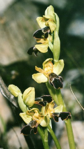 Found in southern Portugal, Spain, Balaeric Islands and Morocco in grasslands, Garrigue, scrub and open woodlands at elevations up to 2000 meters as a minature to rarely medium sized, cold growing terrestrial with an erect stem carrying a few basal, elliptic, acute, speckled leaves and carrying a few conduplicate sheaths that blooms on a to 14" [rarely 20"] [35 to rarely 50 cm] long, [1] 3 to 8 flowered, lax to dense inflorescence occuring in the spring.