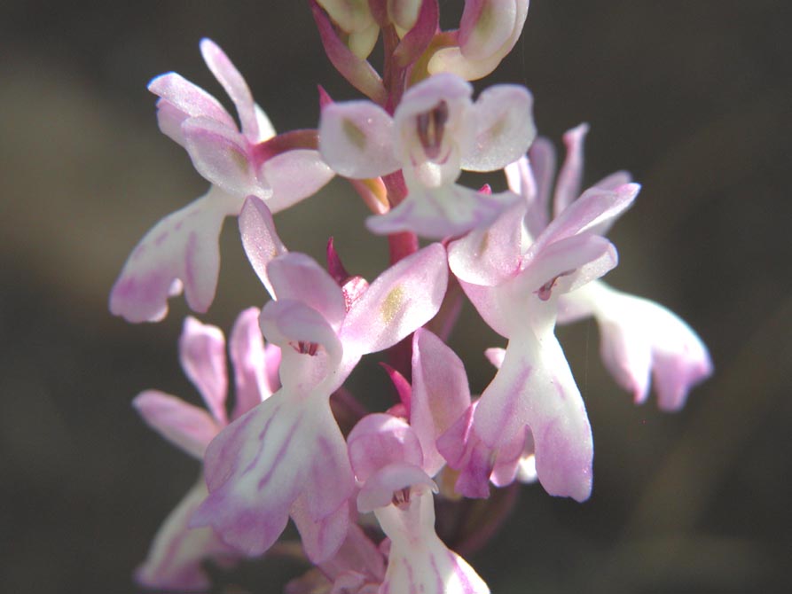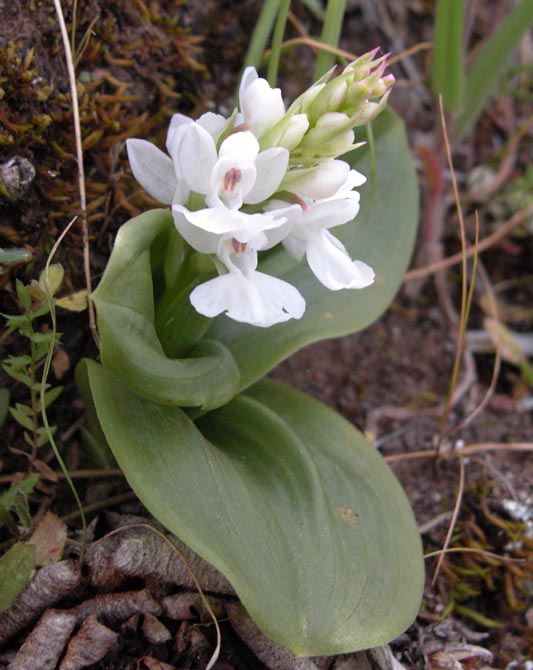 Found in the Canary Islands usually in lava rubble in open woodlands, bushy ravines and on shady rock faces as a small to medium sized, cold growing terrestrial with a basal rosette of smetimes spreading, near erect, lanceolate, acuminate, shiney, unmarked leaves with a smaller, clasping cauline leaf that blooms in the winter and spring on an erect, 6 to 16" [15 to 40 cm] long, 5 to 20 flowered, slightly conical inflorescence with lanceolate, purplish, longer than the ovary floral bracts