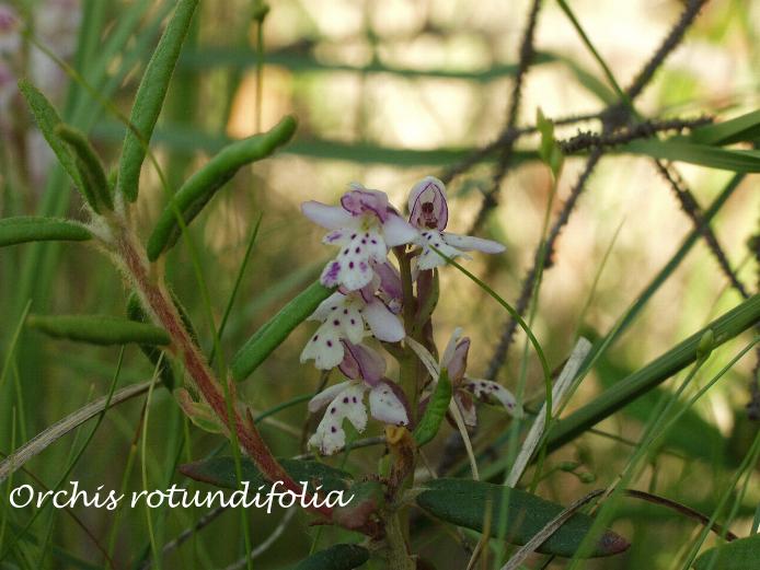 Synonyms Amerorchis rotundifolia (Banks ex Pursh) Hultén 1968; Amerorchis rotundifolia f. beckettii (Boivin) Hultén 1968; Amerorchis rotundifolia var. lineata (Mousley) W.J.Schrenk 1997; Habenaria rotundifolia (Banks ex Pursh) Richardson 1823; Habenaria rotundifolia (Banks ex Pursh) Lindl. 1835; Orchis grandiflora B.Heyne in N.Wallich 1832; Orchis rotundifolia f. angustifolia J.Rousseau 1957; Orchis rotundifolia f. beckettii Boivin 1960; Orchis rotundifolia f. lineata (Mousley) E.G.Voss 1966; Orchis rotundifolia var. lineata Mousley 1941; Platanthera rotundifolia (Banks ex Pursh) Lindl. 1835; Ponerorchis rotundifolia (Banks ex Pursh) Soó 1966