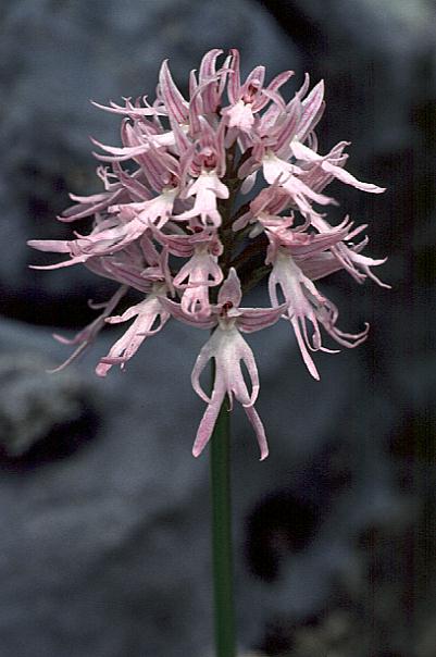 Found in Portugal, Spain, Italy, Yugoslavia, Greece, the Aegean Islands, Turkey, Cyprus, Malta, Syria, Lebannon, Israel, Jordan and all of North Africa except Egypt as a small to medium sized, cold growing terrestrial orchid with ellipsoid tubers, erect stems, 5 to 10, oblong-lanceolate, sometimes spotted purple brown, undulate margined leaves that blooms in the late winter and spring on a dense, conical, many flowered inflorescence with the uppermost flowers opening first.