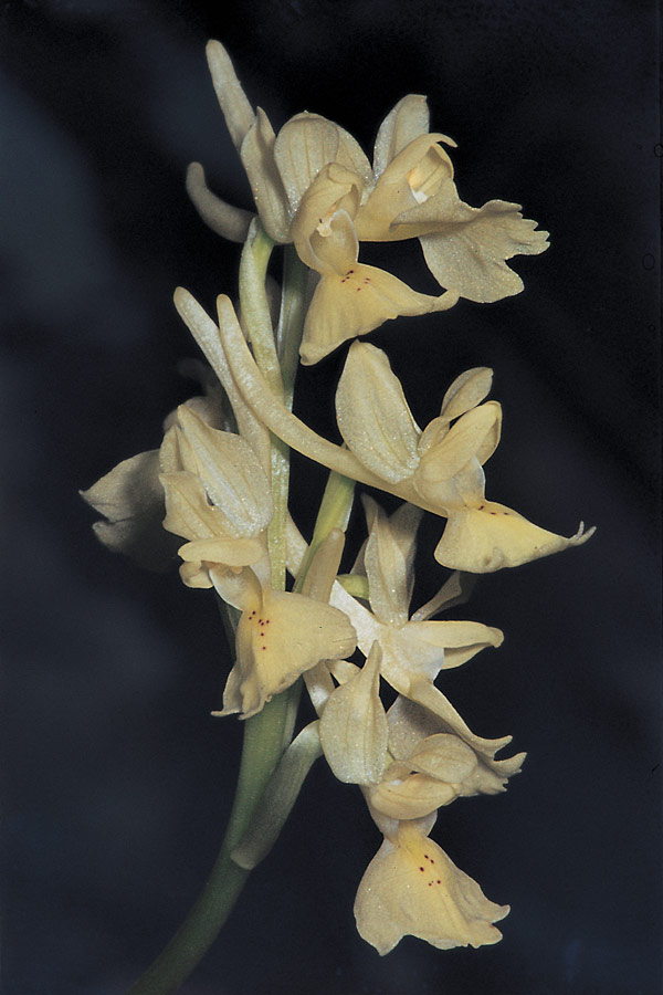 Found in Algeria and Tunisia at elevations around 198 meters as a small sized, cool growing terrestrial and blooms in the spring on an erect, terminal, several flowered inflorescence