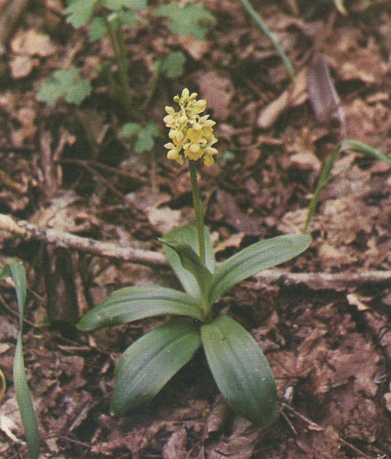 Found in Spain, France, Germany, Czechoslovakia, Austria, Hungary, Switzerland, Italy, Albania, Greece, Turkey, Bulgaria, Romania and Poland as a small to medium sized, cold growing terrestrial found only in calcareous soils in montane beech, pine and fir forests at elevations up to 2000 meters with 4 to 6, in a basal rosette to erect, oblong or oblong-ovate leaves with the uppermost few being sheath-like that blooms in the spring on a 2 to 5" [5 to 12.5 cm] long, rather dense, pyramidal to oblong in shape, inflorescence with fragrant [foul and mostly nocturnal] flowers.
