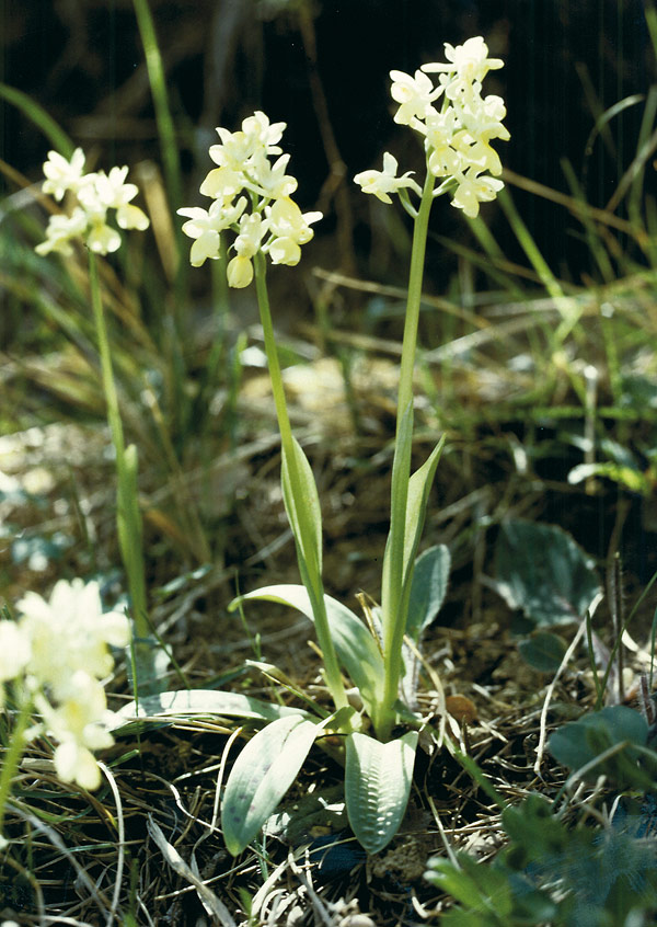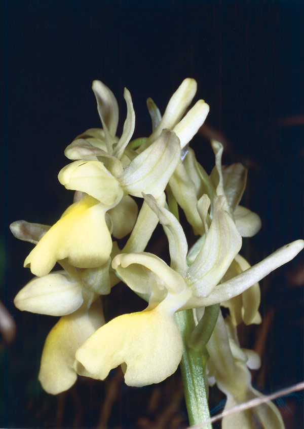 Found in France, Italy, Greece and eastern Europe at elevations around 588 meters as a miniature to small sized, cold growing terrestrial that is a natural hybrid between O. pallens and O. provincialis which blooms in the later spring