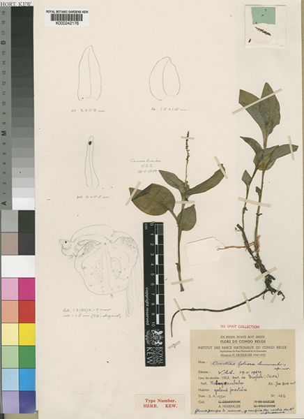 References W3 Tropicos, Kew Monocot list , IPNI ; The Orchids of South Central Africa Williamson 1977 drawing fide; Indian Orchids Guide to Identification and Culture Vol 2 Pradhan 1979 drawing fide; Die Orchideen Band 3 Sonderabdruck aus Schlechter Brieger, Maatsch and Senghas Liferung #14 820 - 880 1984; Flore D'Afrique Centrale [Zaire- Rwands - Burundi] Orhidaceae Premeir parte Geerink 1984 drawing fide; The Taxonomic Revision of the African Genus Orestias Ridl. H.B. Margonska & D.L. Szlachetko 2006 drawing fide; Orchidaceae of West Central Africa Szaltchetko etal 2012 drawing fide