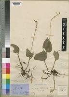 Found in Sao Tome in primary lowland and montane forests at elevations of 200 to 1650 meters as a miniature sized, hot to cool growing terrestrial orchid with clustered, fusiform pseudobulbs enveloped by a few basal leaf sheaths and carrying 3, obliquely ovate, acute, thin, plicate, petiolate base leaves that blooms in the fall on an erect, terminal, peduncle with a few sheaths, [9 to 19 cm] long, densely up to 35 flowered inflorescence carrying greenish white to pinkish flowers