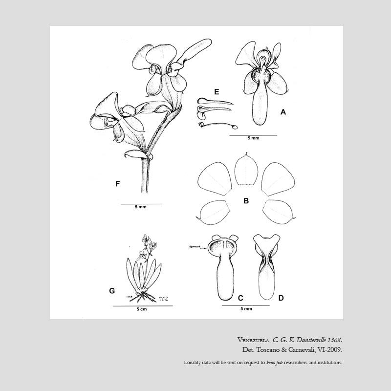 Ornithocephalus dunstervillei Toscano & Carnevali 2009 Drawing by © Dunsterville and The Epidendra Website