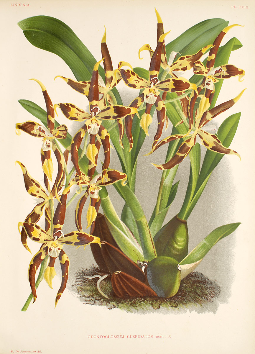 Odontoglossum × mulus Rchb.f. 1870 Drawing by Lucien Linden