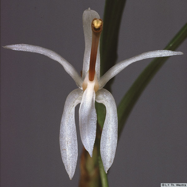 Found in the western Himalayas, the Chinese Himalayas, Yunnan China, the eastern Himalayas, Assam, Nepal, Laos and Vietnam on trees in evergreen oak forests at elevations of 800 to 3000 meters as a small to medium sized, warm to cold growing epiphyte with subcylindrical, elongate-fusiform to clavate, basally sheathed pseudobulbs carrying elliptic-lanceolate to oblong-lanceolate, acute to acuminate, narrowing below into the narrow petiolate base leaves that blooms in the fall through spring on an axillary, proteranthous, decurvevd, 5.2 to 7.4" [13 to 18.5 cm] long, lax, few flowered inflorescence with the peduncle imbricating sheathed in youth and with caducous, linear, broad, acute floral bracts.