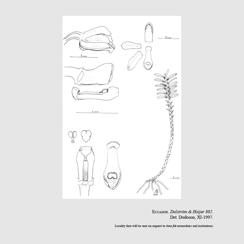 References W3 Tropicos, Kew Monocot list , IPNI ; *Orquideología Vol 20 #3 pg 271–279. 1997 Dodson drawing fide; Die Orchideen lieferung 44-45 Schlechter/Brieger 2001; Rudolf Schlechter Die Orchideen Band 1C lieferung 44-45 pg 2763 - 2898 Brieger 2001; Native Ecuadorian Orchids Vol 4 Dodson 2003;