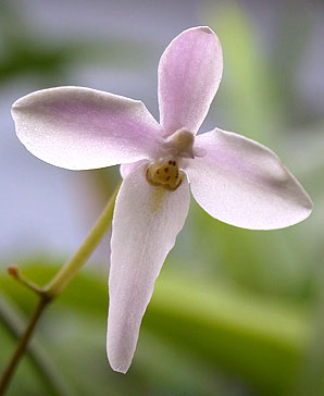 Found in Guatemala and Mexico on trees at altitudes of 1600 to 2100 meters in pine-oak cloud forest and mountain rain forest as a small sized, cool to cold growing epiphyte with an oblong-ellipsoid to oblong-obovoid, strongly compressed pseudobulb subtended by several, scarious sheaths carrying a single, apical, linear-elliptic, acute leaf with a prominent mid vein that blooms in the spring on a basal, 1 1/2' [45cm] long, erect, racemose, few [2 to 5] flowered inflorescence with 2 tubular bracts and a single ovate-triangular floral bract carrying fragrant, showy flowers arising on a mature pseudobulb as the new growth arises and has minute, triangular bracts.