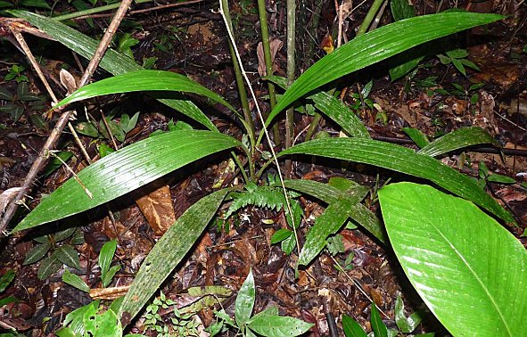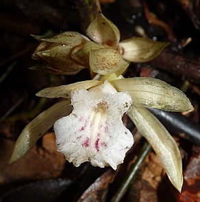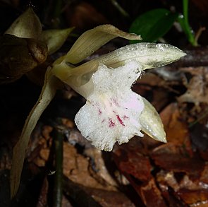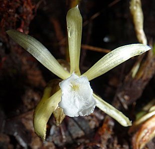 Found in French Guiana, in very wet forests as a large sized terrestrial that blooms in the winter on a terminal, successively single, few flowered inflorescence with several lanceolate bracts.