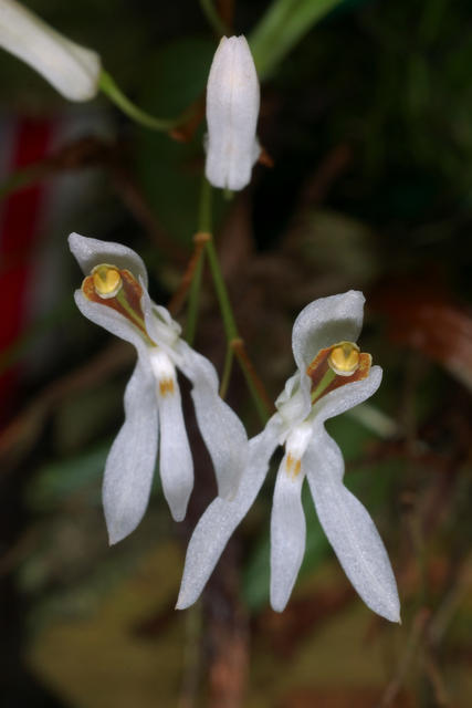 Found in the eastern Himalayas, Assam, Nepal, Bhutan, Sikkim, Myanmar, Thailand, Laos, southern China and Vietnam at elevations of 1500 to 3300 meters as a miniature sized, cool to cold growing epiphyte with close set, narrowly ovoid to ovoid pseudobulbs carrying 1 to 2, lanceolate to elliptic-lanceolate, plicate, acute, petiolate base leaves that blooms in the fall on a terminal, decurved, laxly 5 to 8 flowered, slender, 1.2 to 1.8" [3 to 4.5 cm] long, racemose inflorescence that is basally sheathed and has ovate, acute membraneous, persistent floral bracts all arising on a new growth.