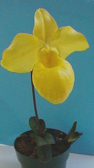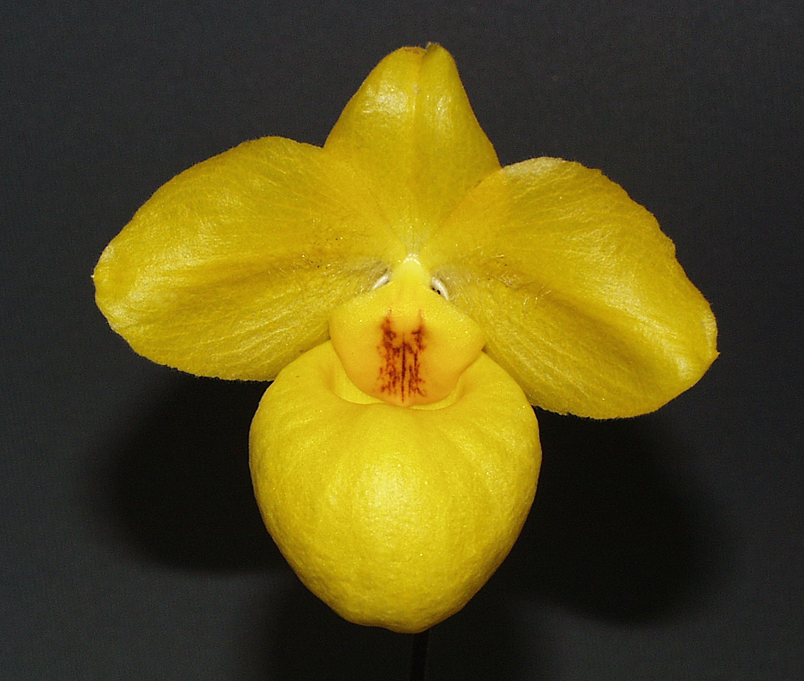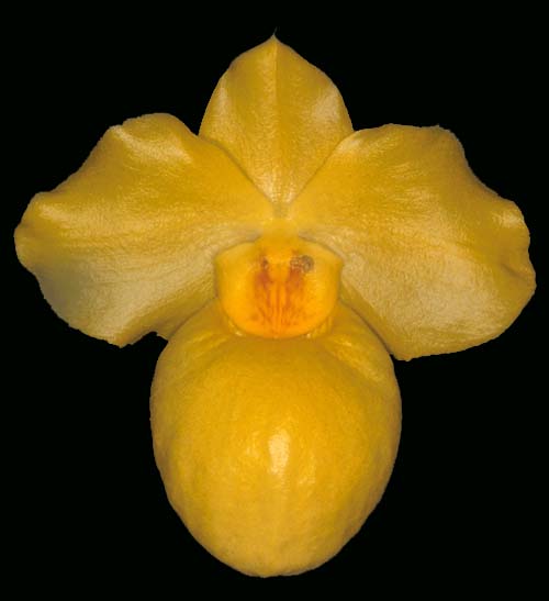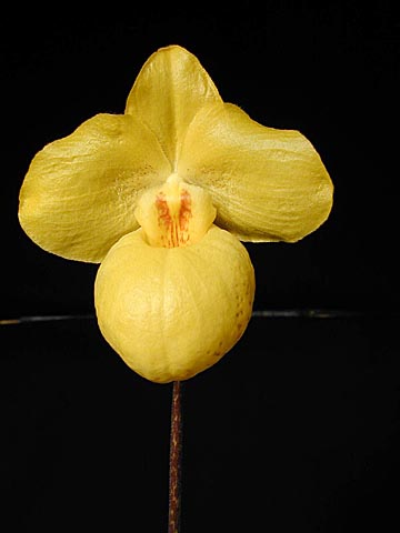 Arguably the most striking of the parvisepalums, Paph.armeniacum has garnered almost 100 AOS awards since its introduction in the US more than a decade ago. Even so, its popularity remains undiminished. With its large golden yellow flowers and amazing pouch, it is easy to see why.