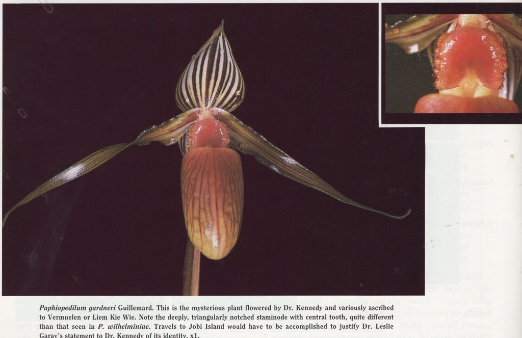 Synonyms *Cypripedium gardineri Guillemard 1886; Paphiopedilum glanduliferum var. gardineri (Guillemard) Braem 1988; Paphiopedilum glandiferum var gardinieri sensu Braem 1988;