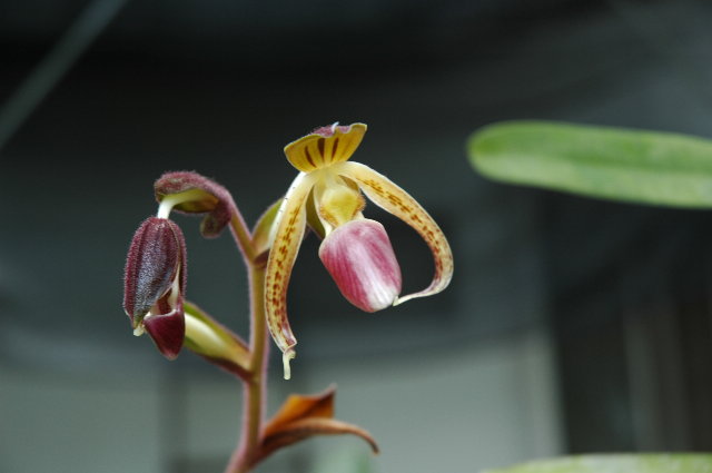 A recently discovered species from the island of Sulawesi that is a warm growing terrestrial on steep ravines with heavy shade at elevations of 700 to 1000 meters always near running water that blooms in the spring and early summer on an erect, green, densly pubescent inflorescence with successively opening, 4 to 6 flowered inflorescence with the flowers held well above the leaves.