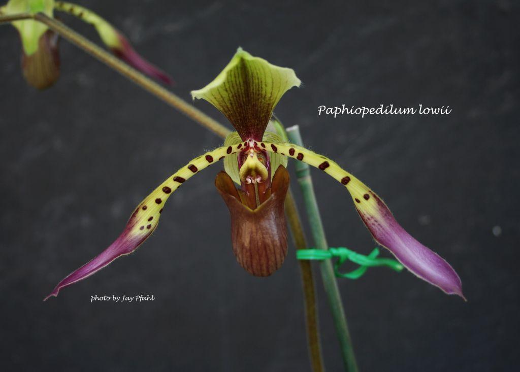 References W3 Tropicos, Kew Monocot list , IPNI ; Bonplandia Rchb.f 1856 as Cypripedium lowii; Bonplandia Rchb.f 1857 as Cypripedium lowii; Die Orchideen Von Java J.J.Smith 1905; Die Orchideen Von Java Figuren Atlas J.J.Sm. 1908 drawing fide; Studies in the Family Orchidaceae Fascile 2 Ames 1908; Die Orchideen Schlechter 1915; Die Orchideen Schlechter 1915 as P lowii var cruciforme; Atlas des Orchidees Cultivees Constantin 1920 as Cypripedium lowii drawing fide; Flora of Malaya Vol 1 Holttum 1957 drawing fide; Encyclopedia of Cultivated Orchids Hawkes 1965; Orchid Digest Vol 34 #3 1970 photo fide; AOS Bulletin Vol 39 No 2 1970 photo fide; Die Orchideen 3 Auflage Bd 1 Sonderabdruck aus Schlechter Lieferung 3 129 to 192; Brieger, Maatsch and Senghas 1971 drawing fide; Orchid Digest Vol 37 no 1 1973 as P lowii ssp malayensis photo fide; AOS Bulletin Vol 49 No 3 1980 photo fide; Orchid Digest Vol 44 no 6 1980 photo fide; Orchid Digest Vol 45 No 3 1981 photo fide; AOS Bulletin Vol 51 No 10 1982 Photo good; Orchid Digest Vol 48 No 5 1984 photo fide; Orchids of Java Comber 1990 photo fide; Orchid Digest Vol 55 No 2 1991 photo fide; The Orchids of Penninsular Mayasia and Singapore Seidenfaden & wood 1992 drawing fide; The Manual Of Cultivated Orchid Species Bechtel, Cribb & Launert 1992 photo fide; The Plants of Mount Kinabalu Vol 2 Orchids Beaman, Wood, Beaman & Beaman 1993 photo fide; A Checklist of the Orchids of Borneo Wood & Cribb 1994 drawing fide; Orchid Digest Vol 59 No 3 1995 photo fide; AOS Bulletin Vol 66 No 10 1997 as P lynniae photo fide; Orchids of Borneo Wood Vol 3 1997 drawing/photo fide; The Genus Paphiopedilum vol 1 Braem 1998; AOS Bulletin Vol 69 No 1 2000 photo fide; Oasis Vol 1 No 3 2000 photo; Rudolf Schlechter Die Orchideen Band 1C lieferung 40 pg 2492 - 2564 Brieger 2000; Rudolf Schlechter Die Orchideen Band 1C lieferung 40 pg 2492 - 2564 Brieger 2000 as P lynniae; Orchids of Sumatra Comber 2001 photo fide; A to Z of South East Asian Orchid Species Vol 1 O'Byrne 2001 photo fide; Orchids of Sarawak Beeman & Wood 2001 photo fide; Orchids of Sarawak Beaman, Wood & Beaman etal 2001 as P lowii vvar aureum; Lindleyana Vol 17 No 1 2002; AOS Bulletin Vol 72 No 1 2003 drawing fide; AOS Bulletin Vol 75 No 3 2006 photo fide; Orchid Digest Vol 77 No 1 2008 photo fide; AOS Bulletin Vol 77 No 6 2008 photo fide; AOS Bulletin Vol 78 #6 2009 photo fide; Malesian Orchid Journal Vol 3 2009 photo/drawing fide; Wild Orchids of the Cameron Highlands REACH 2009 photo fide; AOS Bulletin Vol 79 #4 2010 photo fide; The Orchids of Mount Kinabalu Vol 1 Wood, Beaman, Lamb, Chu Lun and Beaman 2011 photo ok; The Orchids of Mount Kinabalu Vol 2 Wood, Beaman, Lamb, Chu Lun and Beaman 2011 drawing fide; Wild Orchids of Penninsular Malaysia Ong, O'Byrne, Yong & Saw 2011 photo fide; Orchid Digest Vol 76 #4 2012 photo fide; Orchid Digest Vol 76 #1 2012 photo fide; Orchid Digest Vol 76 #4 2012 as P lynniae photo fide; Orchid Digest Vol 79 #1 2015 drawing/photo fide; Orchid Digest Vol 79 #1 2015 as P lowii var lynniae photo fide; AOS Bulletin Vol 86 #5 2017 photo fide; AOS Bulletin Vol 86 #2 2017 drawing fide; Orchid Digest Vol 82 #2 2018 Photo fide; Orchid Digest Vol 82 #2 2018 as P lowii var flavum Photo fide; Orchid Digest Vol 83 #1 2019; AOS Bulletin Vol 88 #4 2019 photo fide; AOS Bulletin Vol 88 #6 2019 photo fide; AOS Bulletin Vol 88 #8 2019 photo fide; AOS Bulletin Vol 89 #11 2020 photo fide;
