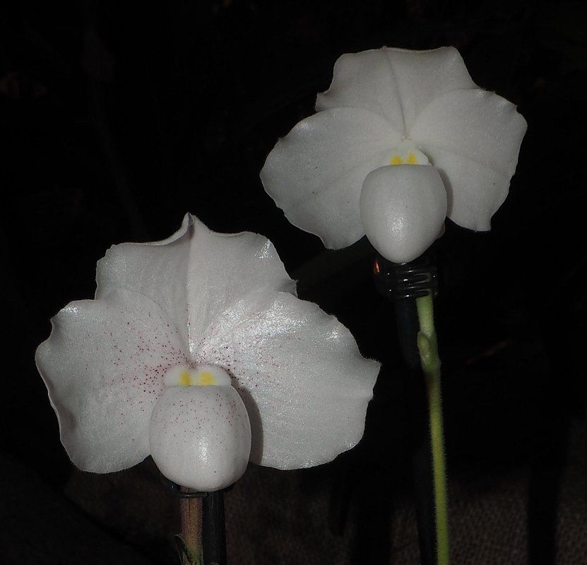 On the left is the normal P niveum form, to the right is Paphiopedilum niveum f. album