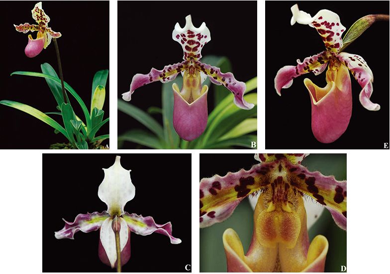 Very similar to and may be a synonym of P henryanum but it is a larger plant with less spotting on the petals and dorsal sepal. This is the first orchid to be described solely on DNA analysis.