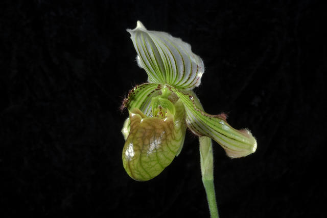 Found in Sikim at elevations of 1500 to 1800 meters as a natural hybrid between P. fairrieanum × P. venustum as a small sized, cool growing terrestrial with 5 to 7, lanceolate, light green with tesselations of deep green, spotted purple towards the base leaves that blooms in the fall and early winter on an erect, 6 to 8" [15 to 20 cm] long, single flowered inflorescence