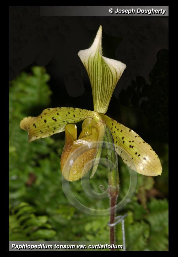 Synonyms Cordula tonsa [Rchb.f] Rolfe 1912; *Cypripedium tonsum Rchb. f. 1883; Paphiopedilum tonsum f. alboviride Braem 1998