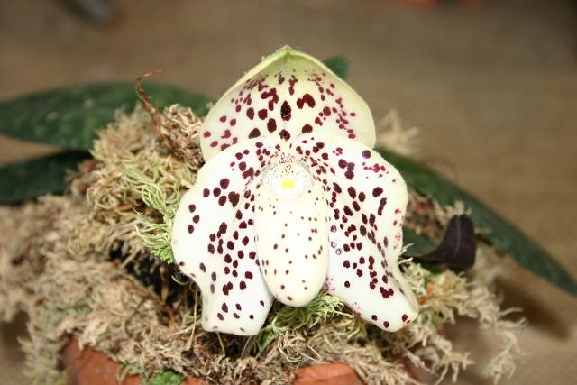 CAUTION This orchid is very similar to the man-made hybrid Paph conco-bellatulum. So it may be a naturally occuring hybrid. It is also cited as a synonym of Paphiopedilum bellatulum.