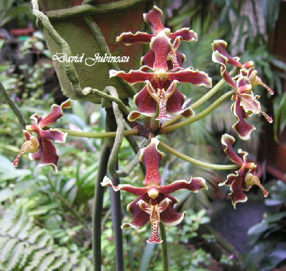 This orchid is similar in cultural requirements to Phalaenopsis but differ in needing to be mounted or in baskets to accomodate the pendant growth habit.