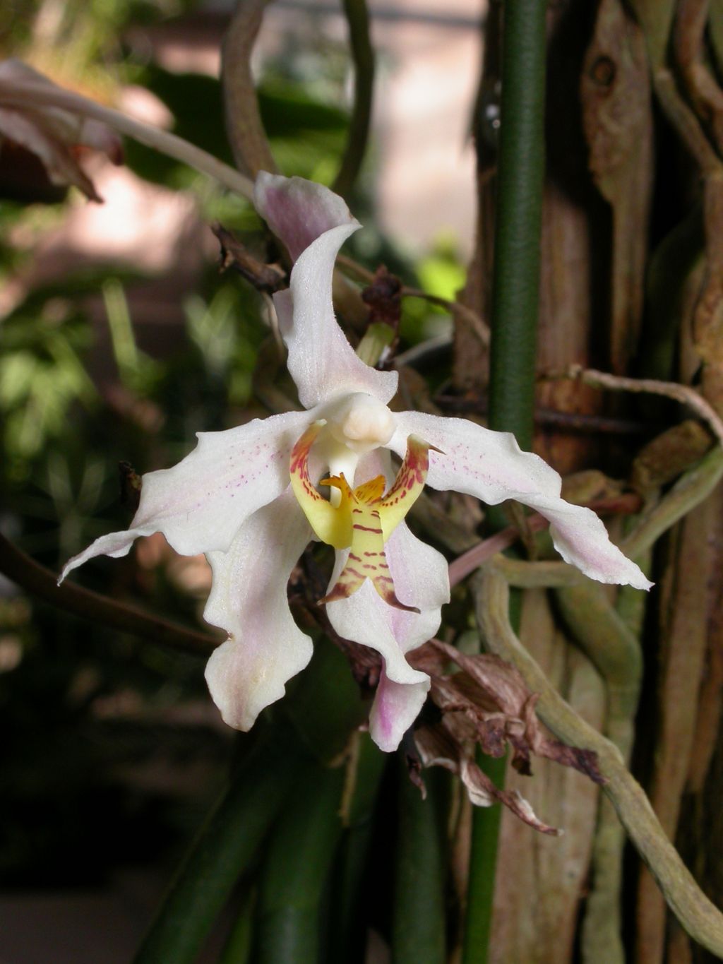 Found in Borneo in seasonal swamp forests in partial shade at elevations below 1000 meters as a small to medium sized, hot to warm growing epiphyte or occasional lithophyte on moss covered rocks with a short, few leaved stem carrying cylindric, caniculate leaves that blooms in the spring on an erect to ascendant, to 7 flowered, to 14" [35 cm] long inflorescence carrying fragrant, long-lasting flowers held close together.