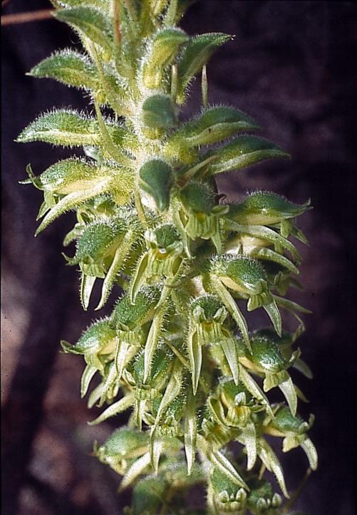 Found in southern Brazil, Paraguay, Uruguay and Argentina in grass and open woodlands as a medium to large sized, cool to cold growing terrestrial with large, dark green, lanceolate, gradually narrowing below into the petiolate base leaves that blooms in the spring and summer on an erect, 20 to 36" [50 to 90 cm] long, 11 to 18 flowered inflorescence with bracts that surpass the length of the flowers.