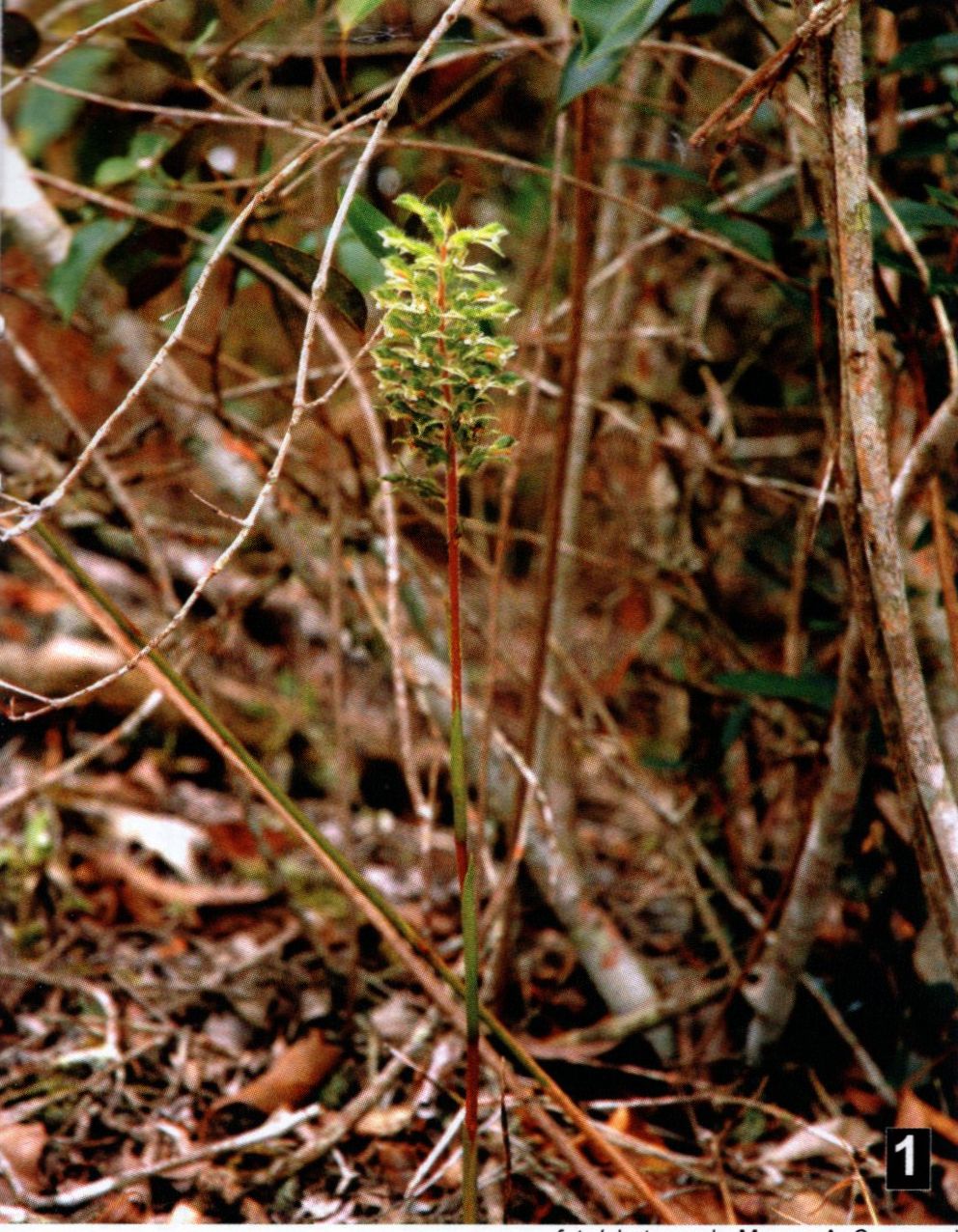 Found in Minas Gerais state of Brazil on stony dry soils in low shrubby vegetation at elevations around 1015 meters as a medium sized, cool growing terrestrial without basal leaves at blooming, with a red brown stem erect, plump, hairy stem provided with 6 well-spaced, acute, amplexicaul, first 2 basal, rest above sheaths that blooms in the winter on an erect, upper 1/5th of the stem, 3.6" [9 cm] long, densely many flowered inflorescence with triangular-oblong, acuminate, shorter than the green pedicel floral bracts and carrying outward facing on all sides flowers.