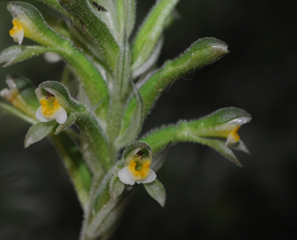 Found in southeastern Brazil, Paraguay and Argentina as a medium sized, cool to cold growing terrestrial orchid with basal, erect, thinly membraneous, oblong, acute, abruptly contracted below into the pseudo-petiolate base leaves that blooms in the late spring on a terminal, erect, 18" to 20" [45 to 50 cm] long, rachis to 10" [to 25 cm] long, 20 to 35 flowered inflorescence with lanceolate, acuminate, as long as the ovary floral bracts.