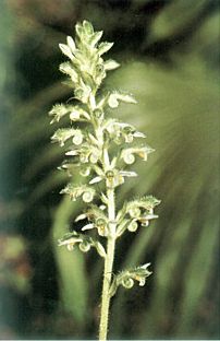 Found eastern Paraguay as a medium sized, cool growing terrestrial without leaves and an erect stem enveloped by 4, tubular, acute, inflated apically bracts and blooms in the late winter and early spring on an erect, terminal, to 32" [80 cm] long, rachis 4" [10 cm] long, 4 to 8 flowered inflorescence with longer than the ovary, triangular-linear, long-acuminate floral bracts.
