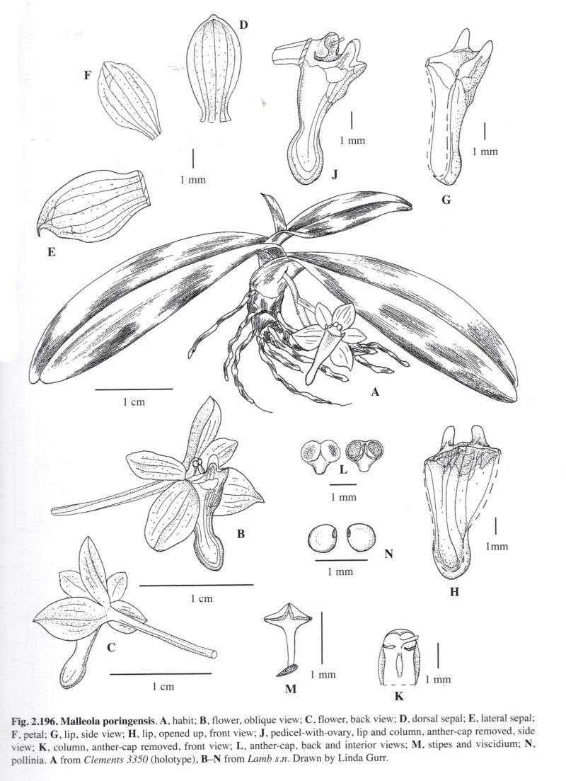 References W3 Tropicos, Kew Monocot list , IPNI ; The Orchids of Mount Kinabalu Vol 2 Wood, Beaman, Lamb, Chu Lun and Beaman 2011 as Malleola poringensis Drawing fide; *Malesian Orchid J. 8: 124 Schuiteman 2011