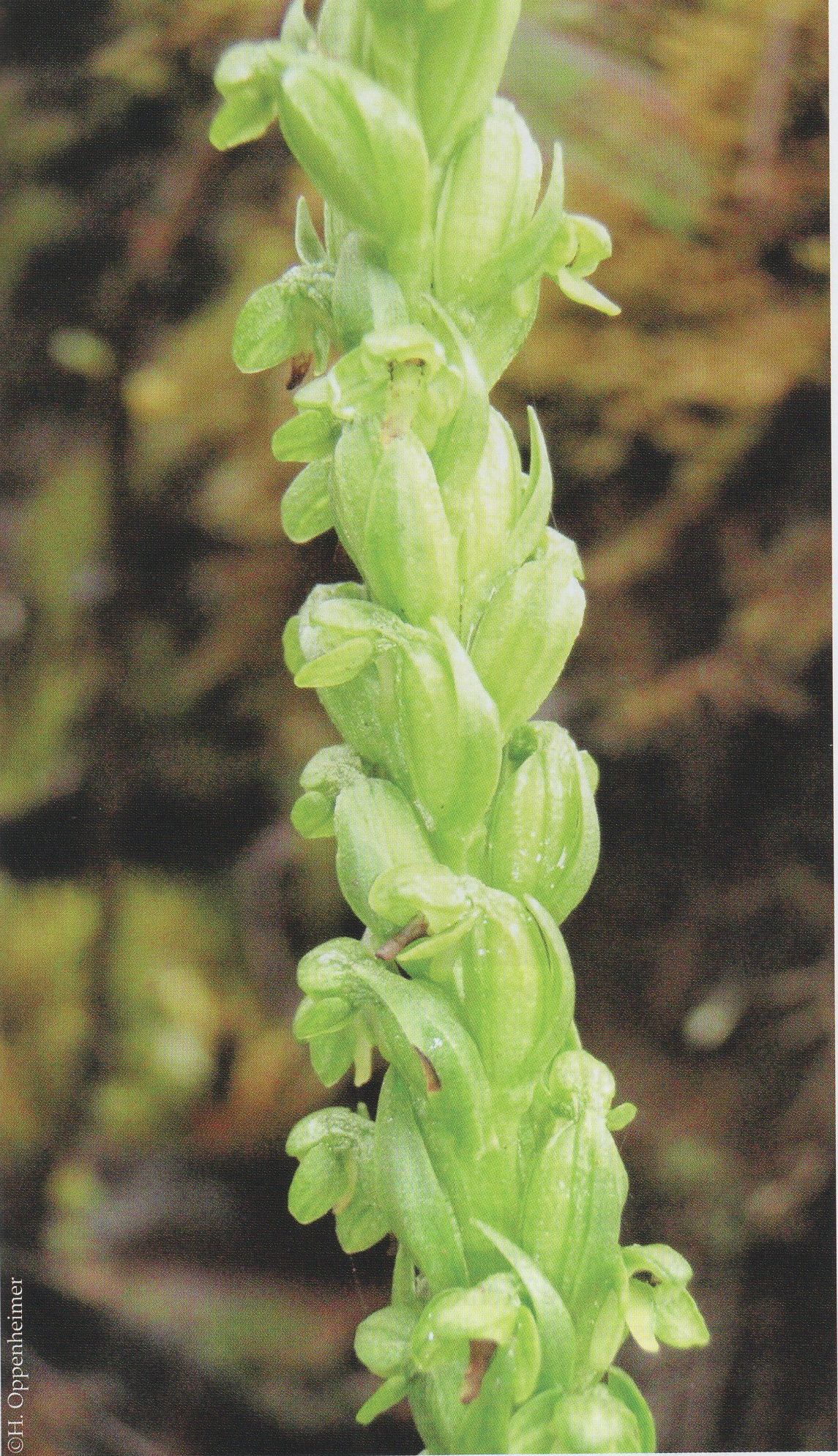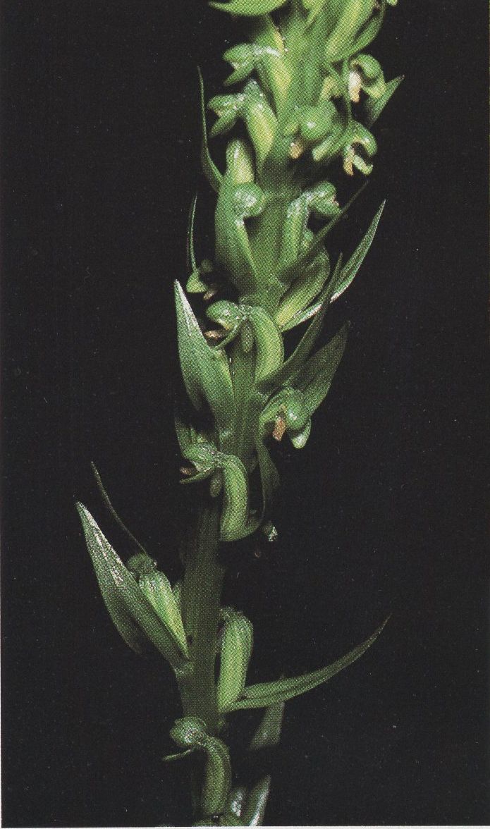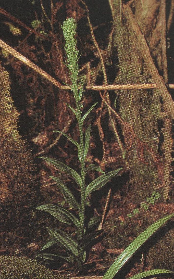 Found rarely only in Maui and Molokai Hawaii in moist and wet forests in bogs on ridges and the subalpine zone of lava substrates at medium elevations as a large sized, warm to cool growing terrestrial with a tuber giving rise to an erect stem carrying a few leaves then grading to bracts above that blooms in the later spring through mid fall on an erect, terminal, many flowered inflorescence.