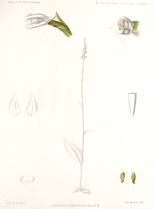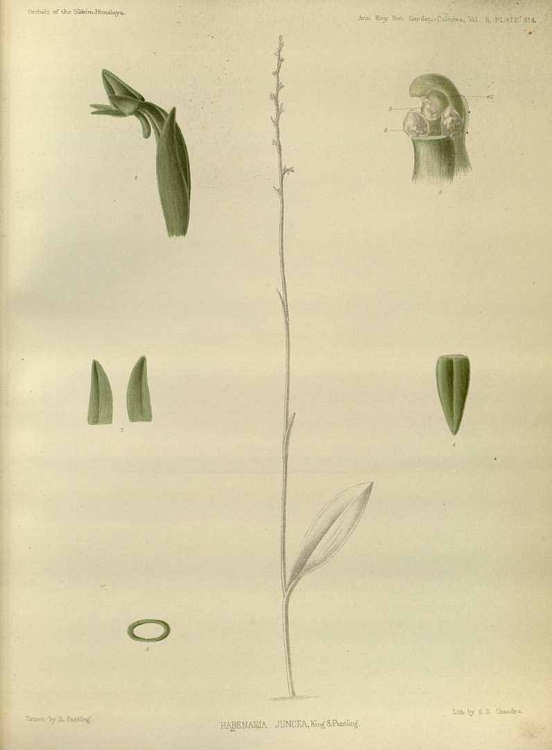 Drawing Pantlings original drawing of Habenaria juncea Drawings by © R Pantling and Swiss Orchid Foundation at the Jany Renz Herbaria Website What was Platanthera juncea Photos by © Naresh Swami and Orchids of Sikkim Himalayas/Memoirs of an Orchid Hunter Website Common Name The Slender Stemmed Peristylus - In China Xiao Qiao Kuo Rui Lan