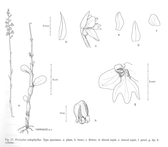 References W3 Tropicos, Kew Monocot list , IPNI ; Flore Generale de Indo-Chine Volume 6 Gagnepain 1934 as Habenaria subaphylla drawing fide; Contributions to a Revision of the Orchid Flora of Cambodia, Laos and Vietnam Seidenfaden 1975 as Habenaria subaphylla;