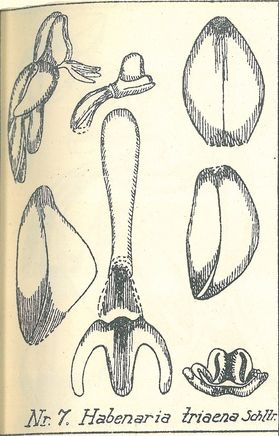 Peristylus triaena (Schltr.) P.F.Hunt 1971 Type Drawing of Habenaria triaena by © Schlechter and The Swiss Orchid Foundation at the Jany Renz Herbaria Website