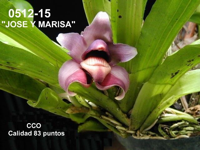 Found in Santander department of Colombia without locality as a medium sized, warm to cool growing epiphyte with 6 to 10, oblong-lanceolate, acuminate, fragile in texture leaves that blooms in the late spring through summer on a 4.8" [12 cm] long, single flowered inflorescence.