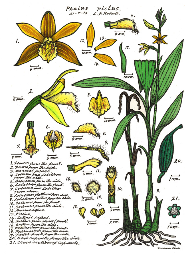 Phaius pictus T.E.Hunt 1952 Drawing By © Lewis Roberts